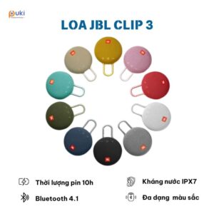 Loa JBL CLIP 3 là sự kết hợp hoàn hảo giữa tính di động và chất lượng âm thanh tuyệt vời trong một thiết kế nhỏ gọn, dễ sử dụng. Nếu bạn đang tìm kiếm một chiếc loa Bluetooth tiện dụng, dễ dàng mang theo và chất âm tốt, thì CLIP 3 chính là sự lựa chọn lý tưởng. Hãy cùng PUKI khám phá ngay về sản phẩm này!