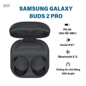 Samsung Galaxy Buds2 Pro là thế hệ tai nghe không dây cao cấp mới nhất của Samsung, được thiết kế để mang đến trải nghiệm âm thanh sống động, chất lượng cao cùng với các tính năng hiện đại. Với thiết kế nhỏ gọn, thời lượng pin ấn tượng và khả năng khử tiếng ồn chủ động hiệu quả, Buds2 Pro nhanh chóng trở thành một trong những lựa chọn hàng đầu cho những người yêu thích âm nhạc. Hãy cùng Puki Audio khám phá ngay về sản phẩm này nhé.