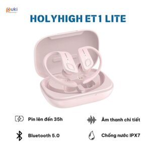 Tai nghe không dây thực sự HolyHigh ET1 có thiết kế móc sau tai. Đối với người dùng đang hoạt động. Điều này đảm bảo bạn sẽ không bị mất chúng trong quá trình hoạt động vất vả. Tuy nhiên, đối với những người đeo kính hoặc kính mát. Thiết kế này có thể không thoải mái vì nó tạo thêm khối lượng lớn sau tai của bạn. Móc tai được làm bằng cao su và được tích hợp vào tai nghe.