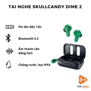 Skullcandy Dime 2 là tai nghe True Wireless hoàn hảo cho trải nghiệm âm thanh sống động, tự do với mức giá hợp lý. Thiết kế nhỏ gọn, âm thanh mạnh mẽ, kết nối ổn định, chống nước, micro, điều khiển cảm ứng và thời lượng pin ấn tượng.